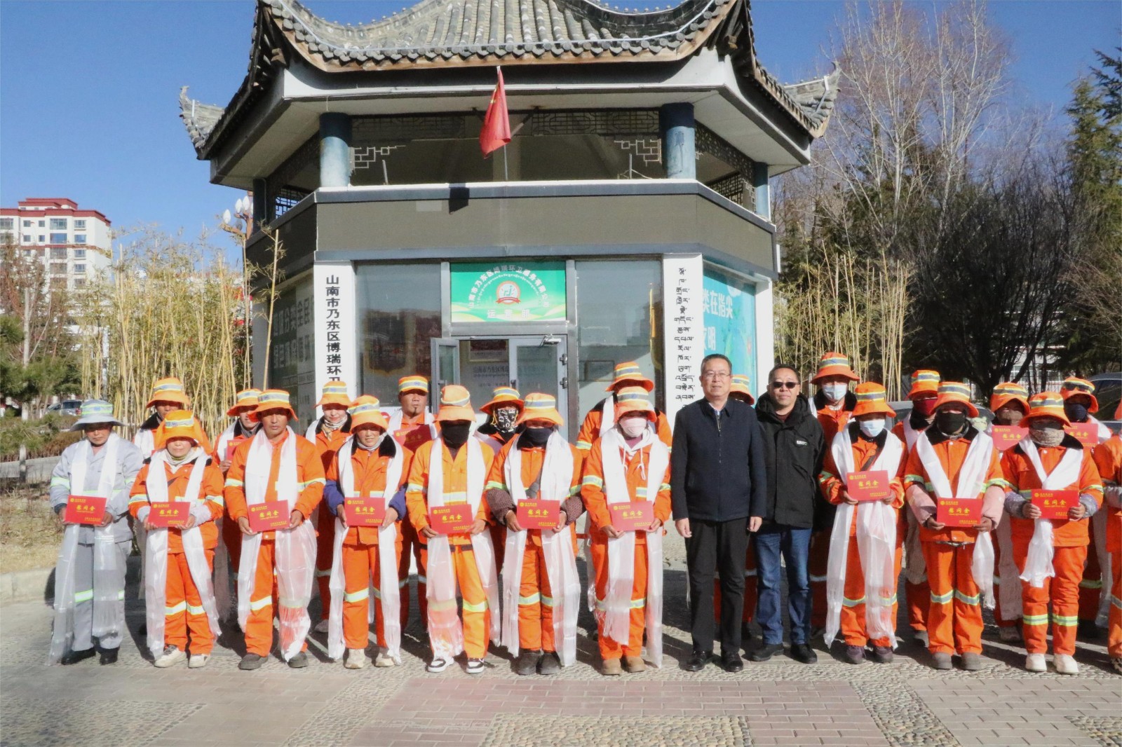 慰问组一行先后深入乃东区博瑞环卫公司、市消防救援支队、国网山南供电公司城区服务中心配电抢修班,西藏清匠电器科技有限公司、等地,走访慰问外卖骑手、快递从业人员、消防指战员以及西藏工匠等一线职工、困难群体和新业态劳动者,为大家送上春节、藏历新年的诚挚祝福与美好祝愿。