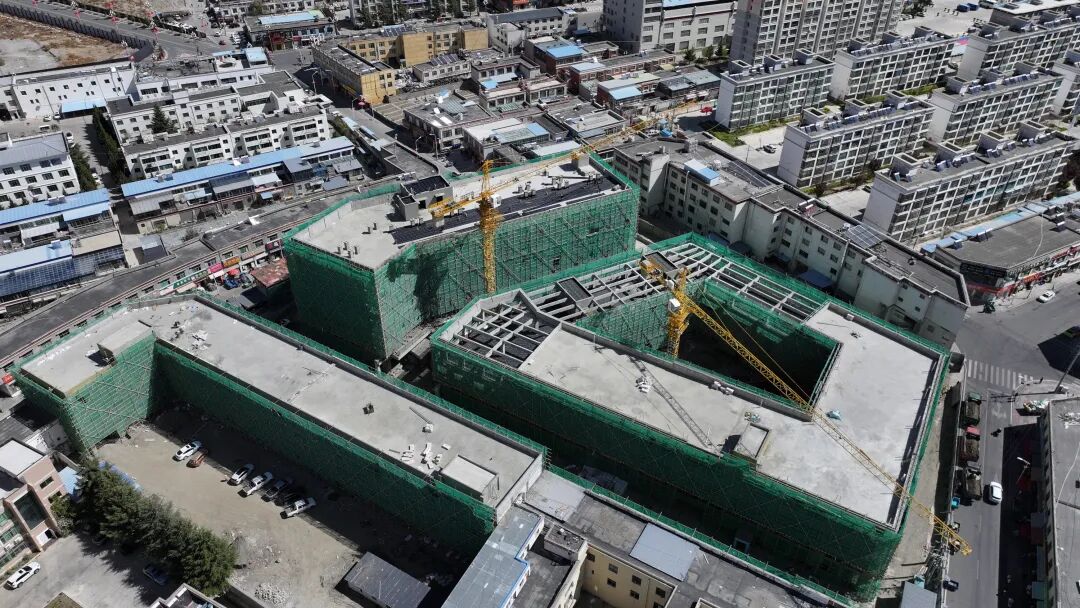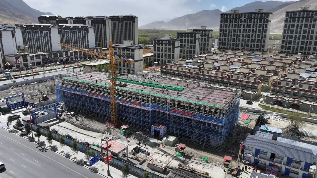 在乃东区农畜产品交流中心及附属配套设施改扩建项目现场,主体工程已初具规模,机械轰鸣、敲击声此起彼伏,呈现出一派紧张有序、大干快上的火热氛围。