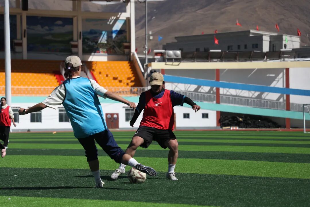 市教育局(体育局)体育卫生艺术工作科科长米玛表示,不同于标准十一人制足球赛,此次比赛时长为40分钟,上下半场各20分钟,节奏更快。为了让现场观众能更近距离感受比赛的魅力,赛场周围还增设了观赛席。