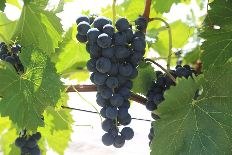 走进采摘园,连片的葡萄架如绿色穹顶般舒展,藤蔓交错间,一串串葡萄缀满枝头,沉甸甸的果穗垂落下来,颗颗饱满,裹着薄薄的“白霜”,在阳光的照射下泛着诱人的光泽。凑近细嗅,清甜的果香混合着泥土的芬芳扑面而来,让人未尝先醉。