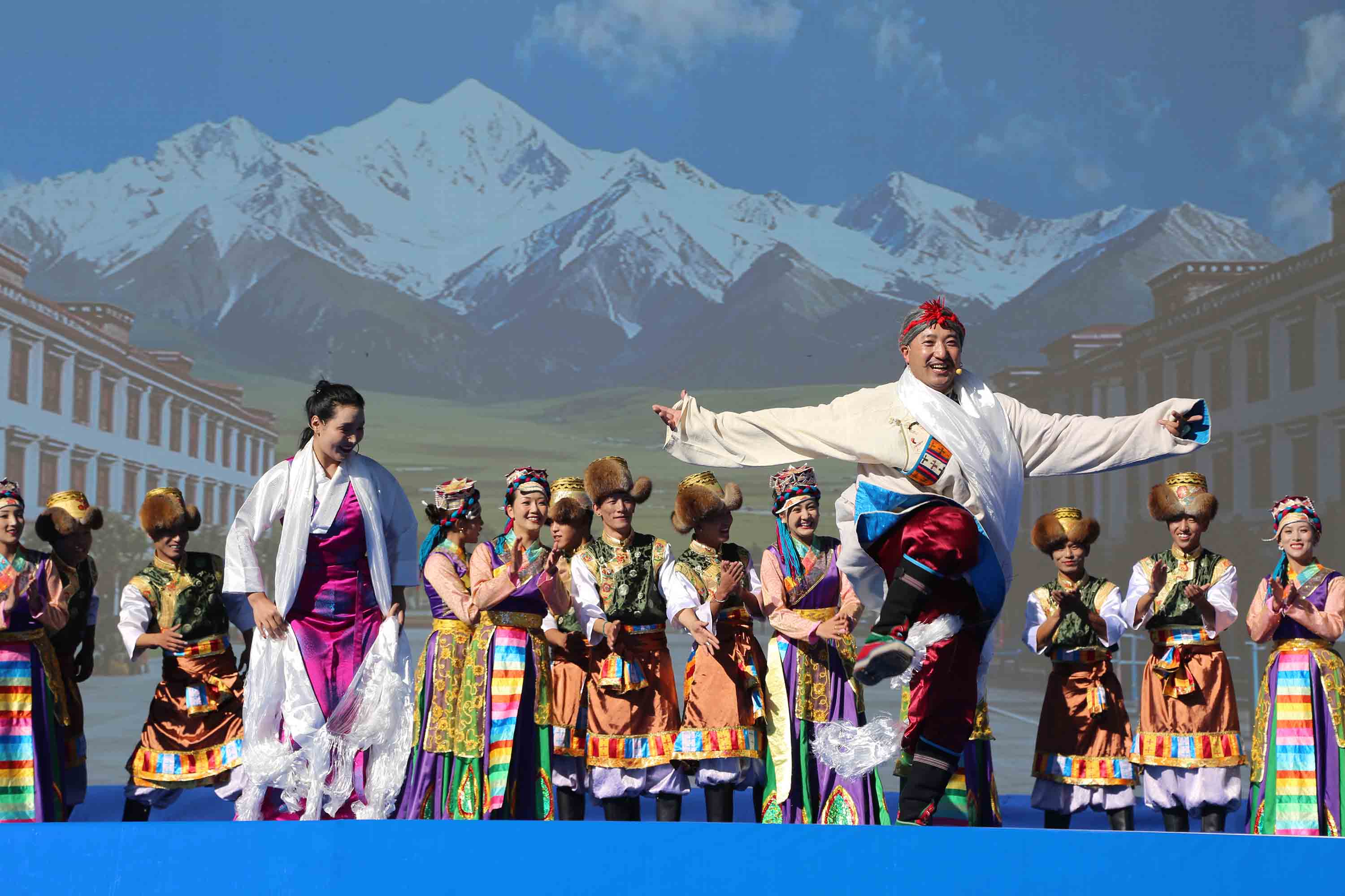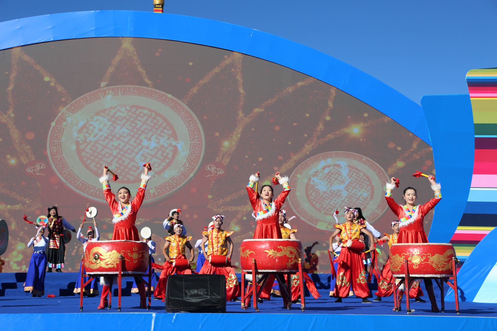 活动在开场舞《鼓震山河 团结筑梦》中隆重开幕,安塞腰鼓和传统大鼓相互配合,舞蹈演员伴随着鼓声腾挪跳跃、舞步热烈奔放,随后,西藏传统鼓乐表演热巴舞和卓舞登台,舞蹈演员敲击着手鼓和腰鼓边击边跳,舞步轻盈灵动,不同鼓乐的同台演绎,构成了一幅民族团结的美好画卷。由自治区歌舞团演员带来的女声独唱《故乡贡嘎》,柔美细腻的歌声生动地描述出了游子对故乡贡嘎深厚的感情。情景舞蹈《乔迁之喜》用一对爷孙的视角向观众讲述了桑布日搬迁点群众如今的幸福生活,紧接着,由森布日文艺演出队带来的舞蹈《雪域歌舞之海》,舞蹈演员们身着那曲传统服饰,用独属于那曲人民热情欢快的舞蹈赢得了现场观众的欢呼声和久久不息的掌声。《古韵邦典》《织梦》《你好贡嘎》《金葵之舞》等歌舞节目轮番上演,将现场的气氛推向高潮。