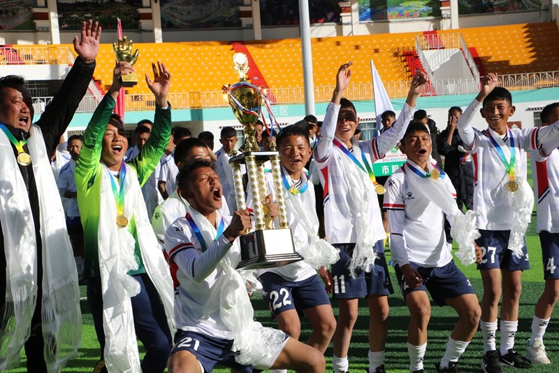 进球的刹那,欢呼声响彻云霄!队员们相拥而庆,汗水混着笑容在脸上绽放,这份喜悦热烈又滚烫。终场哨响,冠军奖杯高高举起,所有人围聚在一起合影留念,金色的奖杯在阳光下熠熠生辉,一张张笑脸定格成山南足球最耀眼的画面。