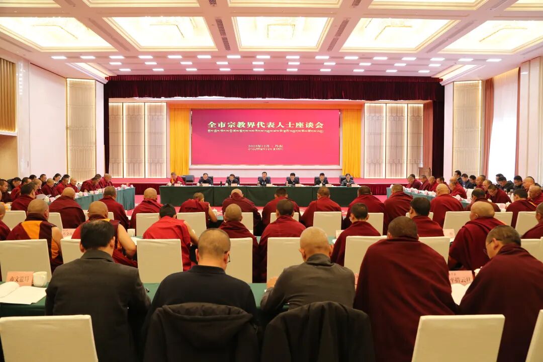 李富忠强调,要把握正确方向,推进藏传佛教中国化。全市宗教界要坚持以“五个有利于”为标准,常态化推进“三个意识”教育,推动藏传佛教中国化走深走实。要在文化浸润上出实招,主动将中华优秀传统文化、社会主义先进文化、社会主义核心价值观融入藏传佛教教规教义,深入挖掘藏传佛教劝人向善、崇尚和谐等积极内容,让藏传佛教教义与中华文化同频共振,切实筑牢中国心、中华魂。要在法治遵循上守底线,坚持把依法治理作为正确处理宗教领域各种矛盾问题、促进宗教领域和谐稳定的根本途径,自觉在法律框架内开展宗教活动,做到依法办教、依规修行。要在价值引领上求实效,对教义教规、管理制度、行为规范等作出顺应时代发展的变革,实现藏传佛教与社会主义社会相适应。